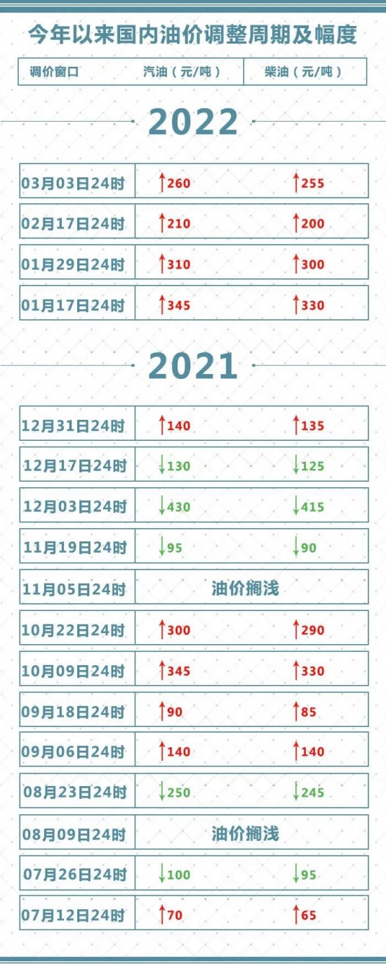 因为,油价调整是以每十个工作日的平均价作为调价依据的。