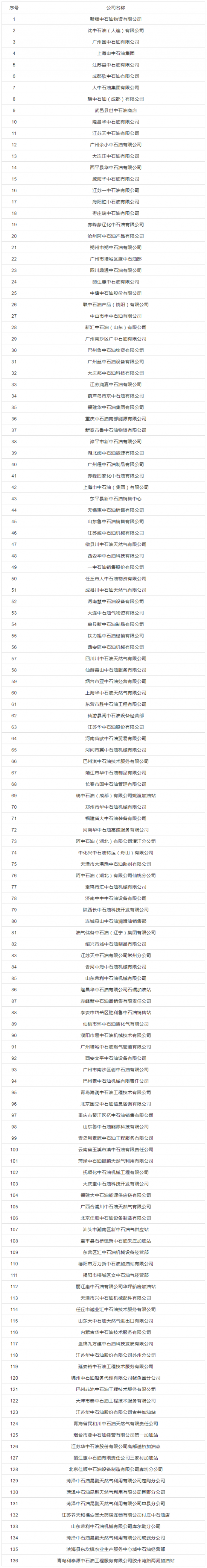 针对136家企业名称中包含“中石油”字样的情况,中国石油表示,上述公司与中国石油无任何隶属或股权投资关系,其一切行为均与中国石油无关。“特此提醒社会各界注意,避免发生混淆误认。”
