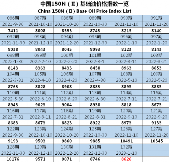 中国150N(Ⅱ)基础油价格指数第132期-节前备货减缓跌势