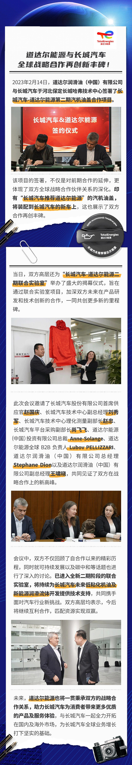道达尔能源与长城汽车全球战略合作再创新丰碑
